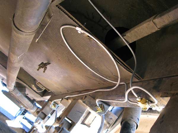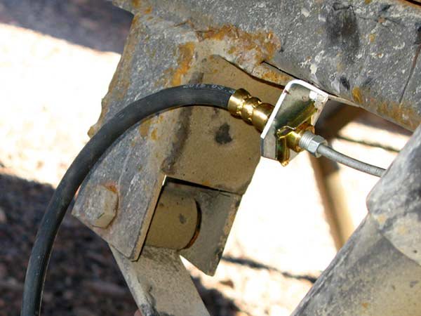 Connect rubber lines to calipers (and BrakeRite) and mount other ends to the frame. From these points you will run the metal tubing along the frame from the BrakeRite to each caliper line. With the metal tubing already cut to length and flared, simply coil up excess line in loose loops to take up any slack.